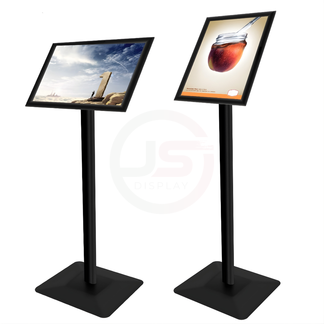 Types: Info Board Adjustable (silver, black & gold), Info Board Fixed (silver & Black), Info Board 2 Leg (silver), Info Board 2 leg with Light (silver)